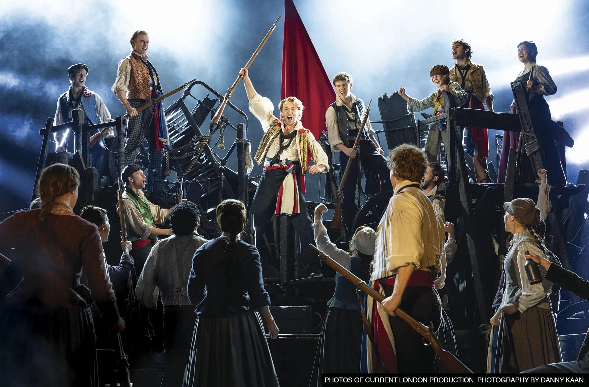 En el contexto de la Francia postrevolucionaria, los destinos de Valjean, Cosette y otros personajes se entrelazan con el levantamiento de jóvenes idealistas en las barricadas. La obra aborda temas como la justicia, el sacrificio y la esperanza, con la magnífica partitura de Boublil y Schönberg que incluye canciones emblemáticas como "I Dreamed a Dream", "On My Own", "Bring Him Home", "Do You Hear The People Sing? ", "One Day More" y muchas más.